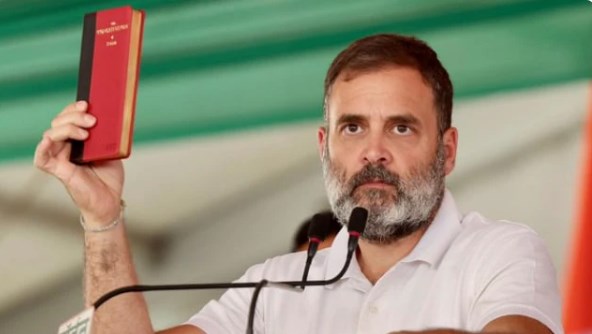 कांग्रेस के पूर्व अध्यक्ष राहुल गांधी ने लोकसभा चुनाव लड़ रहे पार्टी उम्मीदवारों से मंगलवार को आह्वान किया कि वे नामांकन दाखिल करते समय, सभाओं और जनसंपर्क के दौरान अपने पास संविधान की प्रति रखें और लोगों को यह बताएं कि जब तक उनकी पार्टी है तब तक कोई संविधान छीन नहीं सकता।