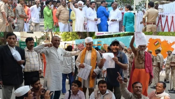 वाराणसी में सात मई से नामांकन शुरू हुआ है। 14 मई तक नामांकन होगा। तीन दिनों में अभी तक चार लोगों ने नामांकन किया है। तीन दिनों में यहां से चुनाव लड़ने के लिए 89 लोगों ने ट्रेजरी फार्म हासिल कर लिया है। पहले ही दिन 52 लोगों ने ट्रेजरी फार्म लिया था। बुधवार को 22 और गुरुवार को 12 ने ट्रेजरी फार्म प्राप्त कर लिया है। अगर सभी ने नामांकन दाखिल कर दिया तो इस चुनाव में एक रिकॉर्ड हो जाएगा।गुरुवार की सुबह से ही ट्रेजरी फार्म प्राप्त करने और नामांकन के लिए पर्चा खरीदने वालों की कतार वाराणसी कलक्ट्रेट आफिस के सामने लग गई। ट्रेजरी जमा करने के बाद भी जब कई घंटे तक लोगों को नामांकन फार्म नहीं मिला तो उनका गुस्सा फूट पड़ा। कलक्ट्रेट के गेट पर ही नारेबाजी शुरू हो गई। तानाशाही नहीं चलेगी, प्रशासन मुर्दाबाद के नारे गूंजने लगे। आसपास खड़ी पुलिस इस दौरान पहले लोगों को शांत करने का प्रयास किया लेकिन मामला ज्यादा नहीं बढ़ जाए इसलिए मूकदर्शक बन गई।