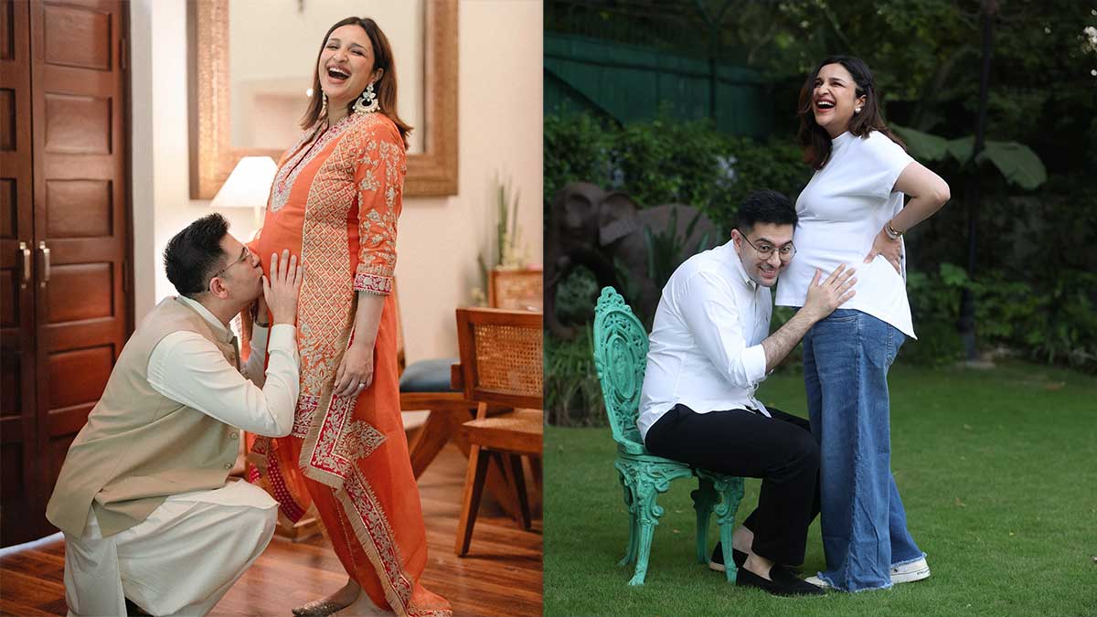 राघव चड्ढा ने परिणीति के साथ अपनी चार खूबसूरत तस्वीरें पोस्ट की हैं. पहली तस्वीर में परिणीति ऑरेंज कलर का सूट पहने हुए बेबी बंप फ्लॉन्ट करती नजर आ रही हैं, वहीं राघव प्यार से उनके बेबी बंप को चूमते हुए पोज दे रहे हैं.